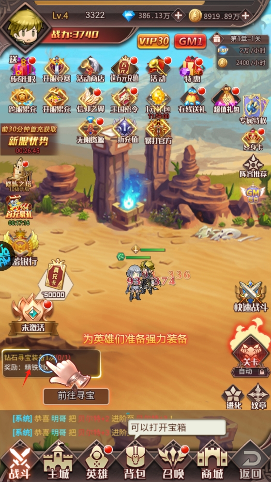 2、登錄游戲即可領取鉆石、金幣以及激活卡,這些初始資源將為你的戰斗提供有力支持。