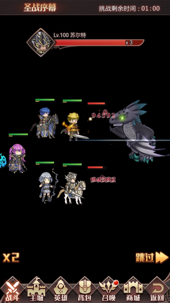 3、進入主線任務后,會自動觸發戰斗,你可以選擇跳過戰斗過程,快速推進劇情,體驗戰棋掛機的輕松玩法。