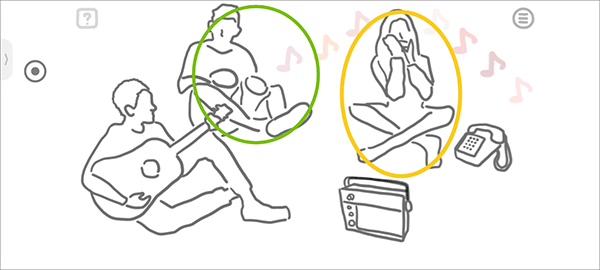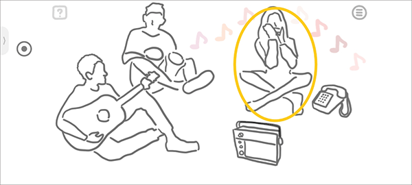 再點擊音響和手機之后,第一個吹口笛的小姐姐一共出現了7中音符所以排序1234567。