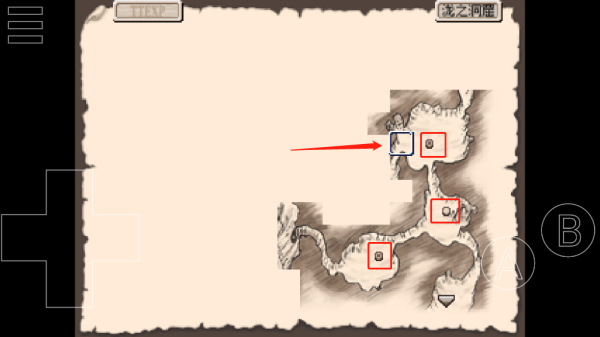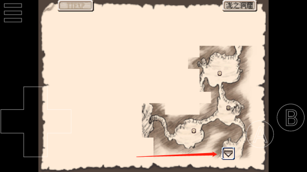 7、移動方框至“倒三角”,退出冒險回到城鎮。