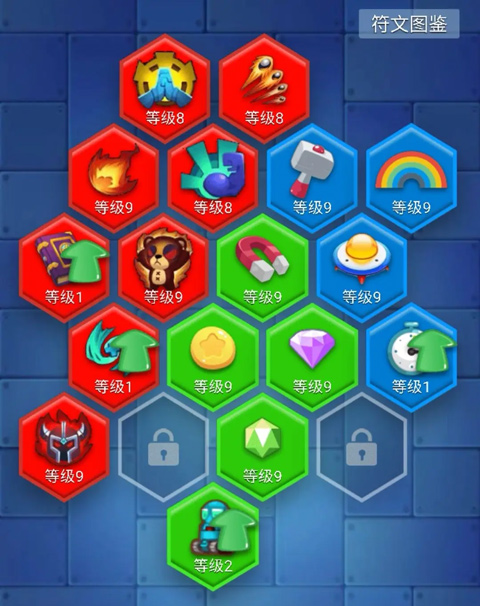 不同符文的最高級不一樣,敏捷16級滿級,自動打造、自動合成19級滿級,彩虹25滿級,其他綠色、藍色30滿級,紅色除去敏捷外不封頂,無限升優先升級