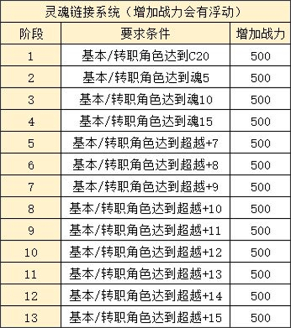 英雄成長階段主要分為進化(升六星)-覺醒至6階(藍六+6)-追逐者0-25(c25)-靈魂印記(s15),在形態核心后可以用相同的英雄進行升級,也可以用作超越7階段以上的用途,超越7以上轉職新增靈魂鏈接系統,在轉職和本體達到同樣的超越7以上的等級時有戰力加成,但是消耗也超級加倍,如果資源充足的話,可以留一些本體進行超越,以下是靈魂鏈接系統增加的戰力: