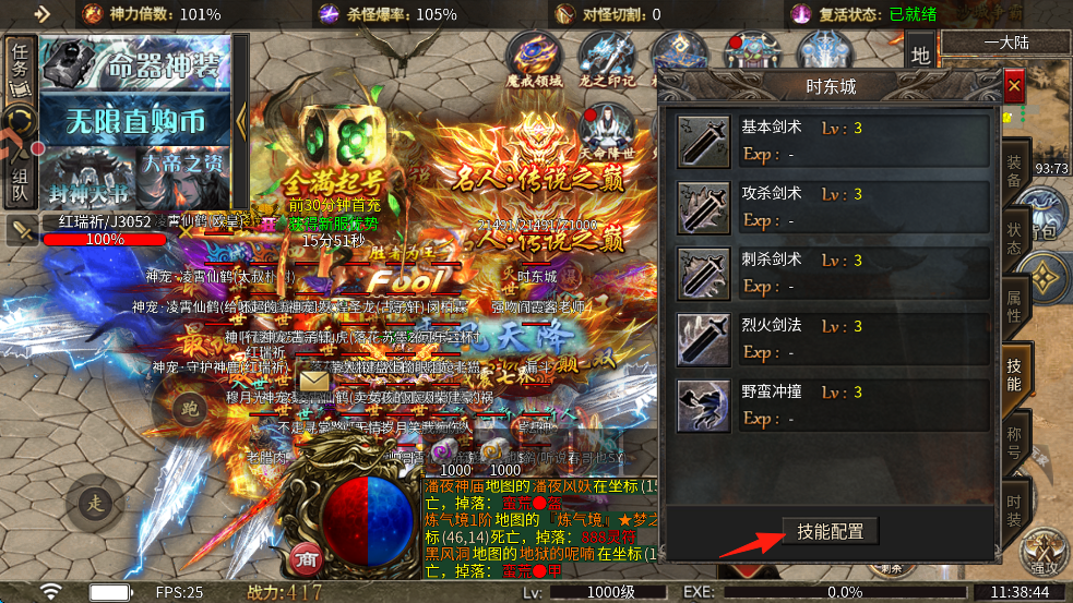 4、點擊技能,隨后點擊右側對應的技能槽,這樣就配置好技能了。
