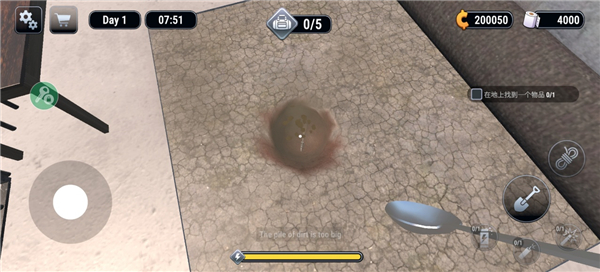 4、同時使用道具開始挖掘,挖掘下面可能有物品。