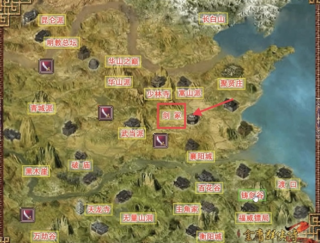 1、首先我們需要去劍冢,具體位置如下圖所示。
