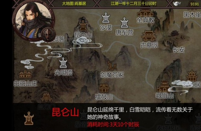 1、首先玩家需要進入游戲后首先在地圖上找到昆侖山,然后進去昆侖山。