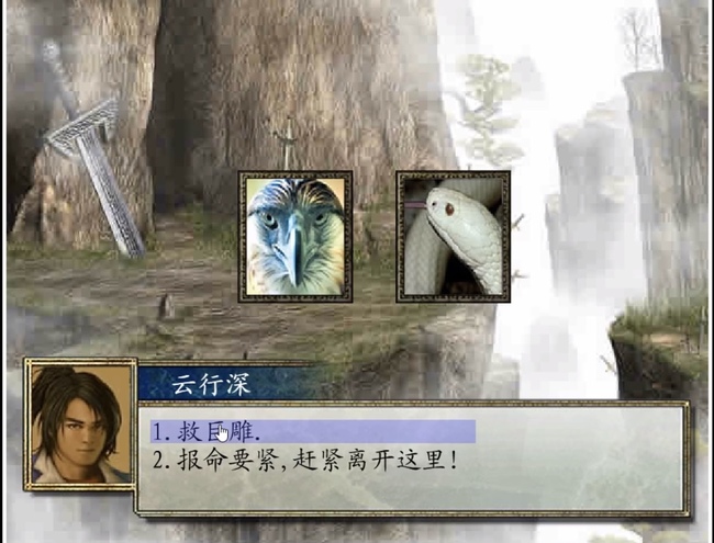 2、進入場景后,與巨雕對話,發現它被巨蟒困住,你要選擇救巨雕。