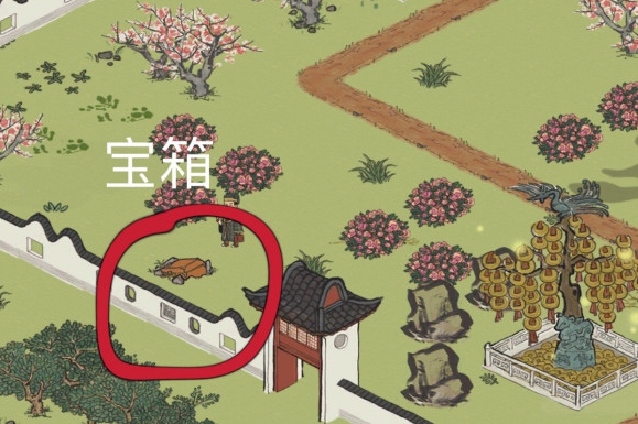 4、第四個寶箱:在白色圍墻里面,將梨樹砍掉才能看到
