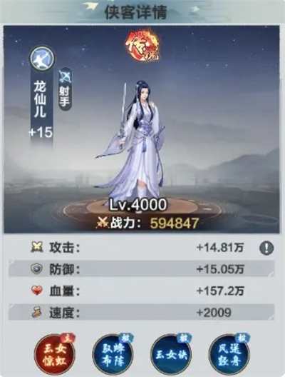 這5個俠客除了趙郡主外正好激活五絕屬性“陣容光環”【攻擊+15%氣血+15%】