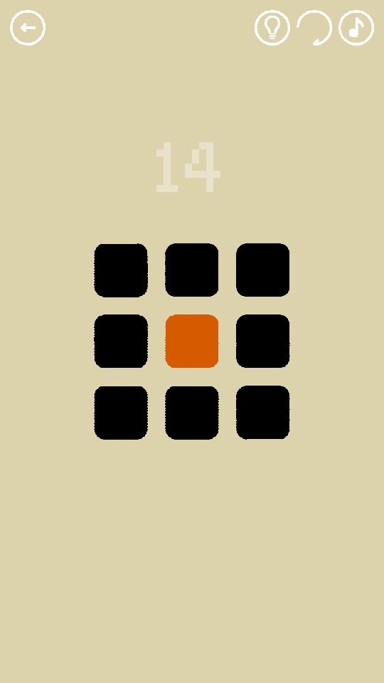 第十四關:每個角塊和順時針第三關塊在一起會變黑,將所有變黑達到下圖