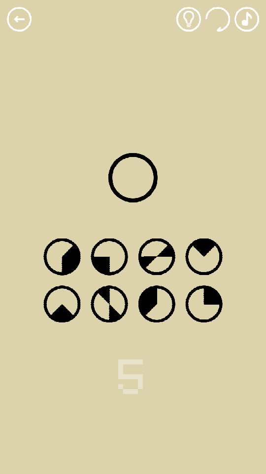 第十一關:順或逆時針劃動屏幕中間區域,直到半圓正好到上面,點擊掉下來的黑球