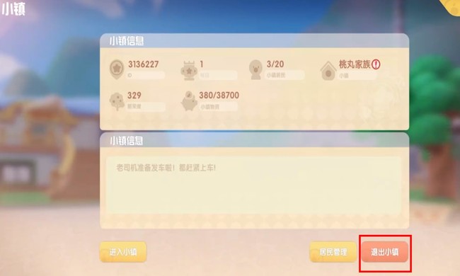 2、進(jìn)入小鎮(zhèn)信息頁(yè)面,點(diǎn)擊右下角的“退出小鎮(zhèn)”,如圖所示,
