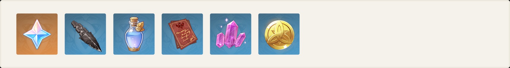 原石、武器突破素材、祝圣油膏、精鍛用魔礦、摩拉獎勵