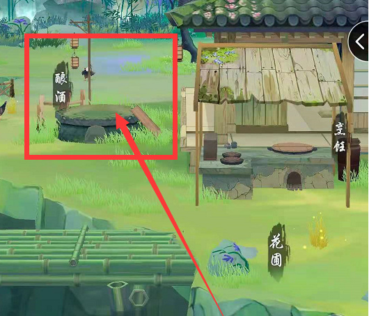 2、會在釀酒桶左邊看到一條河,點擊河里的籃子,如圖所示。