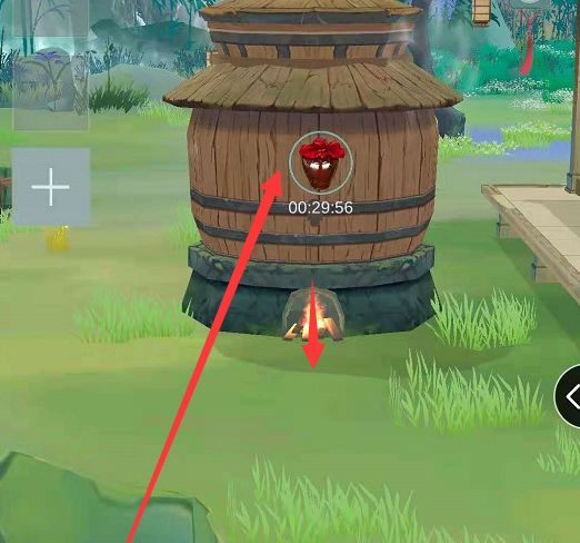 4、最后放入一個小麥和水,再滑動柴火,即可進(jìn)行釀酒。