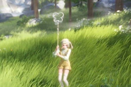 1、先來到許愿樹下,和兩個小孩NPC對話接取任務,接著開始收集周圍的奇想星。