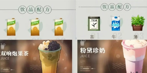 粉黛珍奶:果汁、牛奶、珍珠