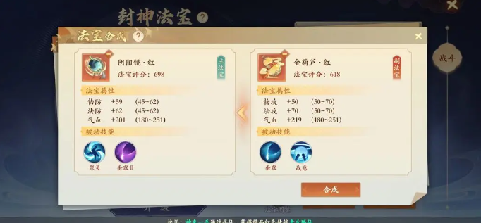 5、建議合成的回收,法寶的被動技能可以根據玩家自己的選擇進行合成。