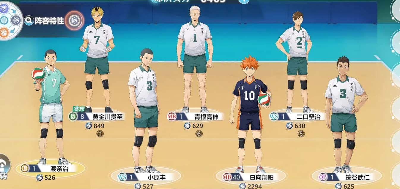 核心成員:「田中龍之介」、「日向翔陽」、「西谷夕」,這些角色都需要通過UP池抽取。