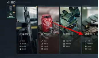 1、進入游戲主頁面,找到并點擊進入部門,然后選擇軍需供應,在這里找到并點擊醫療部門。
