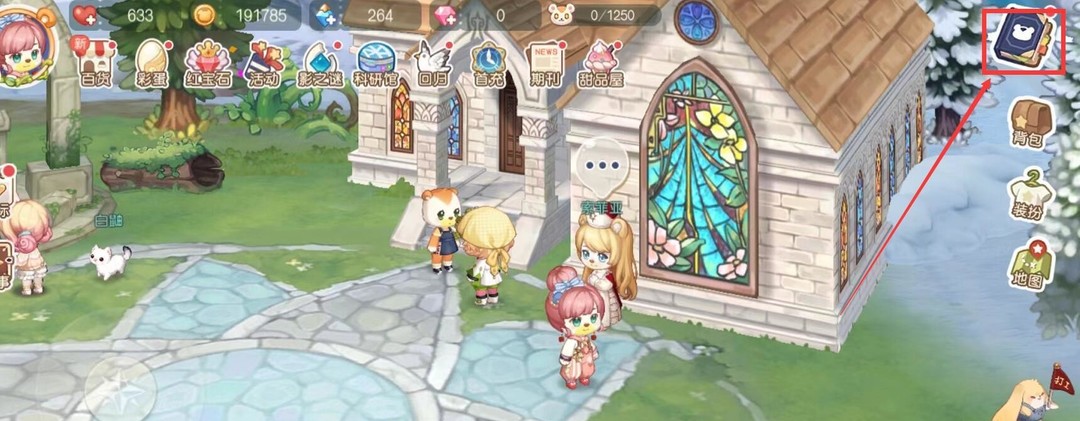 1、進入游戲,在主頁點擊右上角的小藍書,如圖所示。