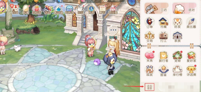 2、在彈出的功能欄中,點擊如圖所示的禮物盒按鈕,如圖所示。