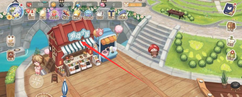 2、達到奧比廣場后,點擊游戲小屋。