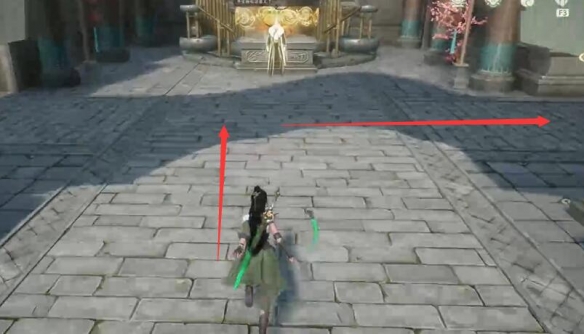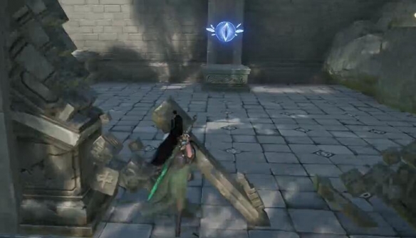 5、接著站在旁邊的石像上,將前方的石頭拉放在石像上