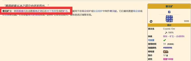1、在擊敗極地之靈后,在地下雪原使用精金鎬或鈦金鎬挖掘即可獲得。
