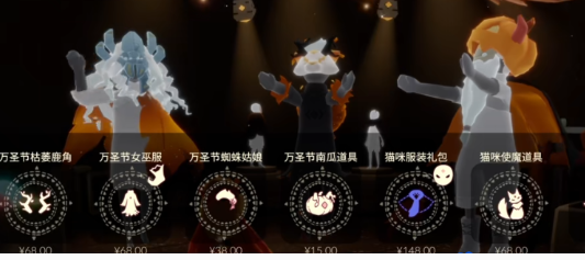 可以購買枯萎鹿角、女巫服、蜘蛛姑娘、南瓜道具等六個返場禮包