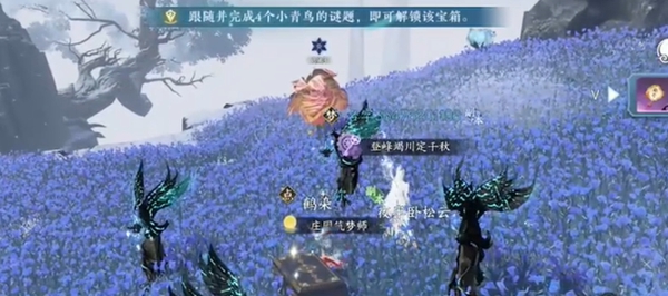 2、到達(dá)目的地后,完成4個(gè)小青鳥的謎題任務(wù),接著來到【1143,1312】位置使用霜星;