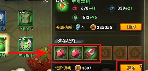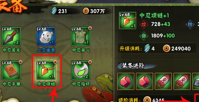 2、如果進(jìn)行忍具合成,就需要點(diǎn)擊右側(cè)的進(jìn)階按鈕