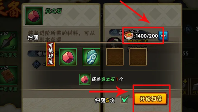 4、在掃蕩的時(shí)候,要消耗體力才可以掃蕩到材料