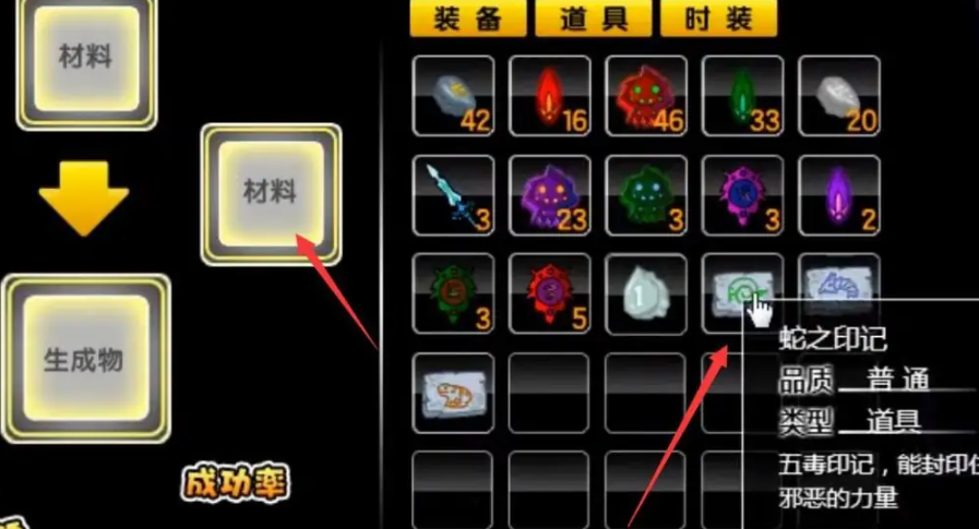 2、進(jìn)入煉丹爐頁面后,加入合成五毒獸需要的材料
