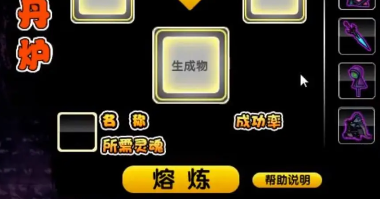 3、接著把材料放入煉丹爐中,完成后點(diǎn)擊下方的熔煉按鈕