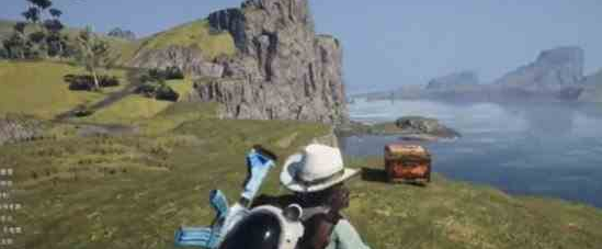 2、第二個寶箱:在島嶼中間的河流這里,沿著河流往前走,就可以看到寶箱了。