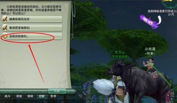 4、最后和NPC小布高對話,在對話中點擊送我回稻香村即可返回
