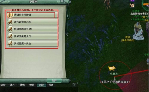 3、領取任務后按照提示,尋找NPC小亦夏提交清明時節雨紛紛任務
