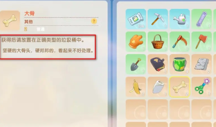 1、垃圾需要對他們進行分類后扔進垃圾桶,目前還沒有正式上線垃圾桶功能