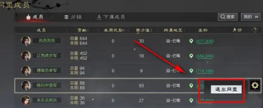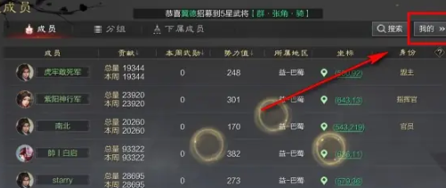 3、接著在成員列表中點擊我的,即可定位到自己在同盟中的信息