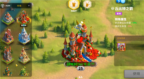 2、進(jìn)入后,可在里面看到自己擁有的城堡皮膚列表,選擇一個想更換的皮膚,點(diǎn)擊右下角使用就可以了。