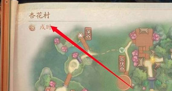 1、進入游戲后打開地圖,然后在戊時去到杏花村地圖
