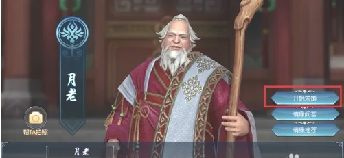 4、和月老對話后,選擇開始求婚,使用道具向另一位玩家求婚后,等待同意即可完成結婚;