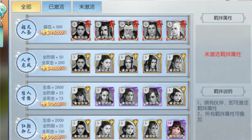 3、另外不同類型的伙伴,在激活后帶來的羈絆屬性、修為值都是不同的;