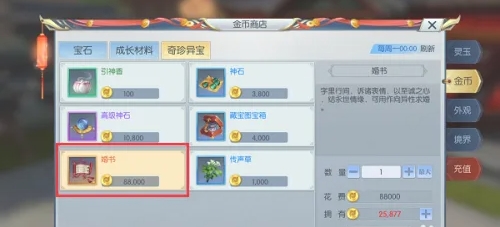 5、請注意求婚的道具是婚書,需要在商店花費88000金幣購買;