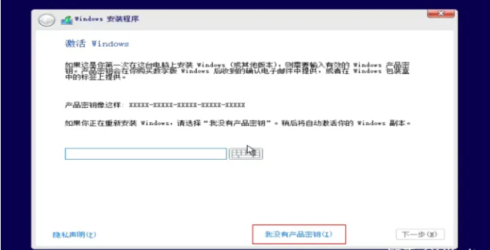 6、耐心等待系統啟動,來到新界面,選擇“我沒有產品密鑰”來跳過就可以啦。(如果你有密鑰自然直接輸入即可)