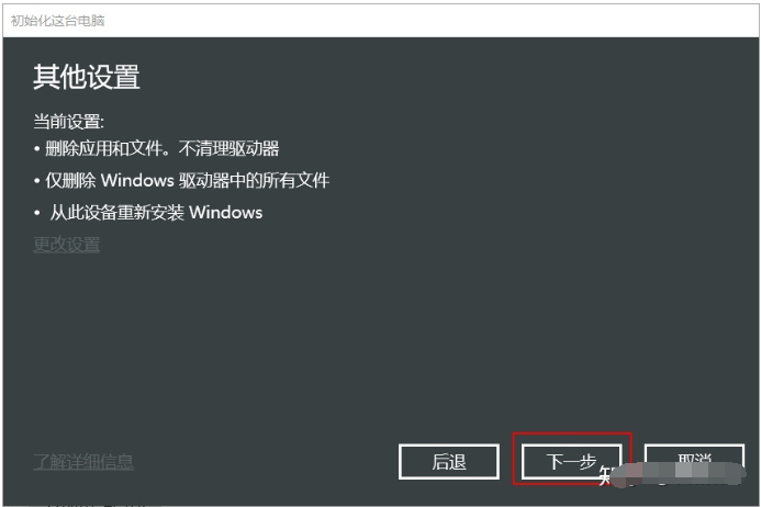 4、點擊重置,耐心等待系統自帶進入重置安裝。
