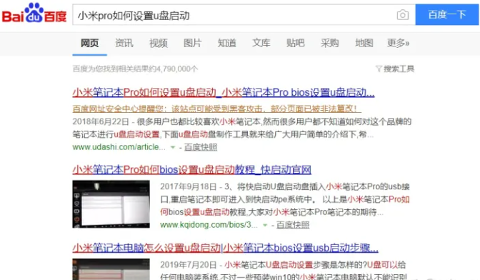 2、如果不懂如何啟動進u盤啟動的話,大家也可以直接搜型號如何進入BIOS設置開機啟動,比如“小米Pro如何設置U盤啟動”即可找到相關方法等等。