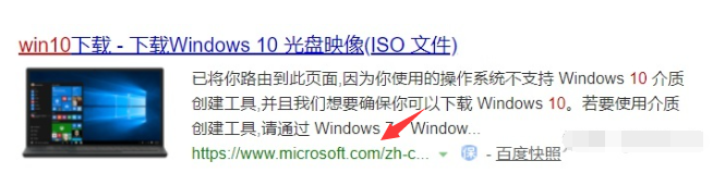 1、首先打開瀏覽器,搜索Win10下載,找到微軟官方提供的工具下載地址進入其中。