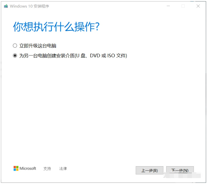 5、選擇“為另一臺電腦創建安裝介質”即可。